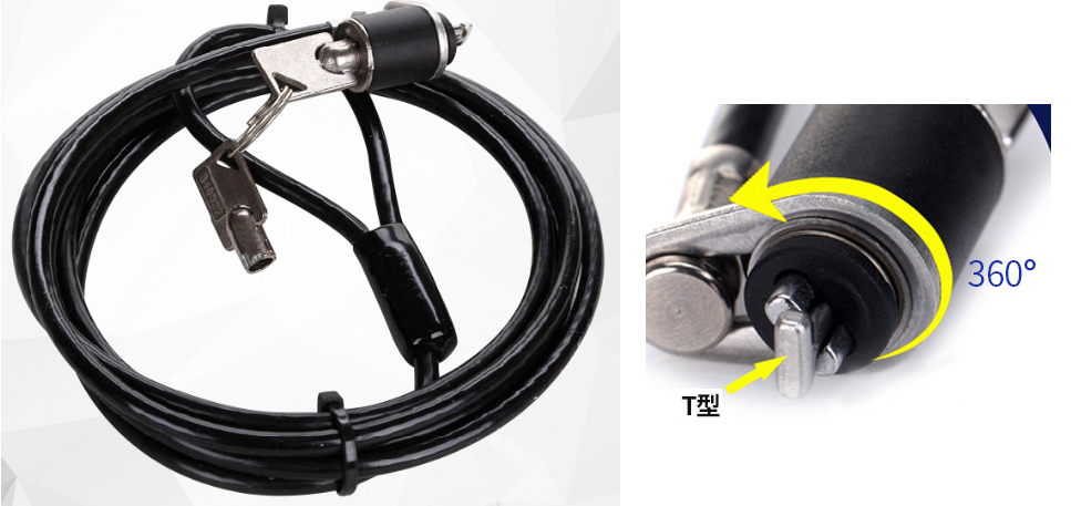 - 360度可旋轉T-型鎖頭,適用於 7x3mm鎖孔